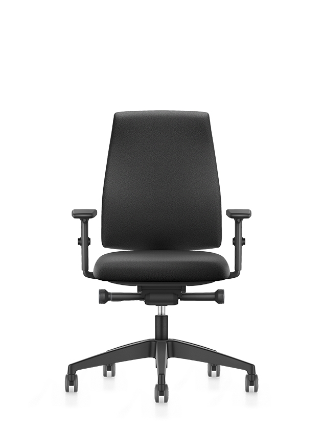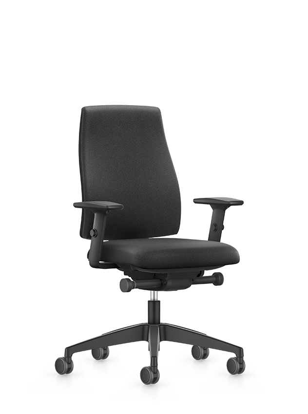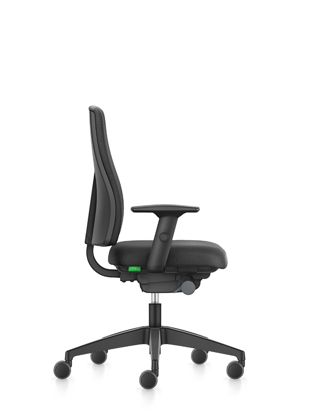 Een ARBO goedgekeurde (EN1335) bureaustoel die beschikt over alle nodige functies om goed te zitten.