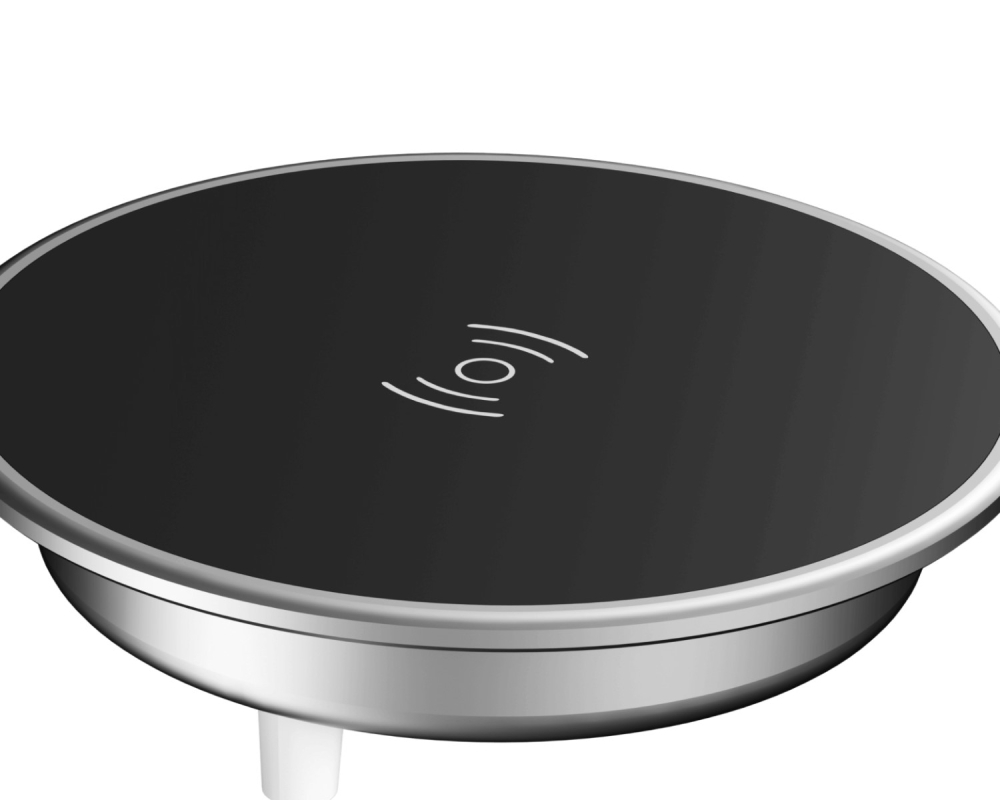 Draadloze snellader voor montage in je bureaublad. Maakt opladen een stuk eenvoudiger door je telefoon vlak op de lader te leggen. Je batterij in no time weer vol!!