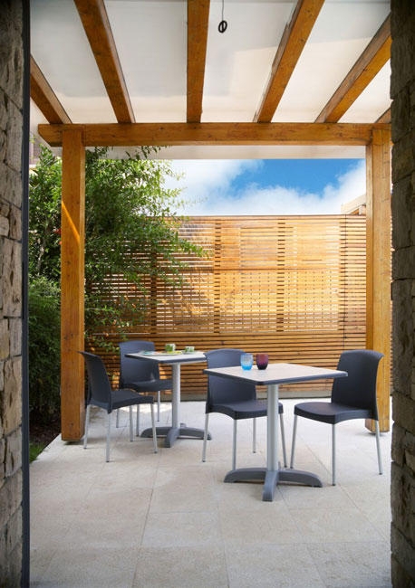Een kantinestoel van een Italiaans kwaliteitsmerk. Design door Mark Robson/Luisa Battaglia.