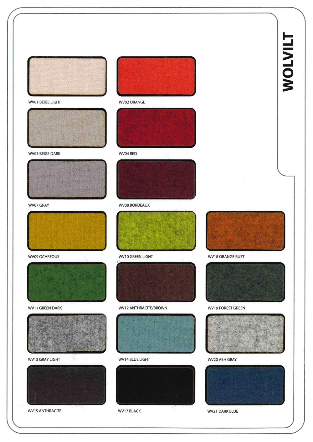 - Uitgevoerd in een Wolvilt stoffering (88% wol, 12% polyamide)