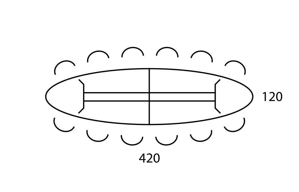 Vergadertafel Real ellips 420x120cm op 3 poten